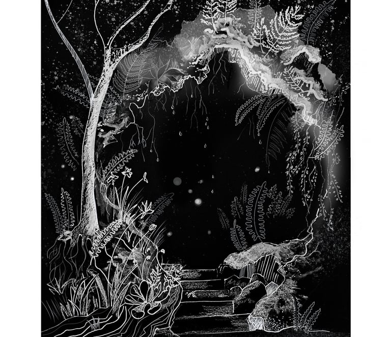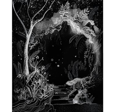 Hay una cueva que he dibujado, porque entré en ella hace tiempo y todo cambió. La he dibujado y hoy comparto una reflexión de ella no como un espacio físico, sino como un lugar simbólico en el alma, donde se enfrentan las sombras, los miedos y las verdades ocultas. A través de este descenso, se descubren tesoros internos: fragmentos olvidados de uno mismo, la esencia auténtica que el miedo y el tiempo han sepultado. El verdadero crecimiento ocurre al abrazar la oscuridad, ya que solo así se puede regresar transformado, llevando la luz interior que revela nuestra identidad más profunda.